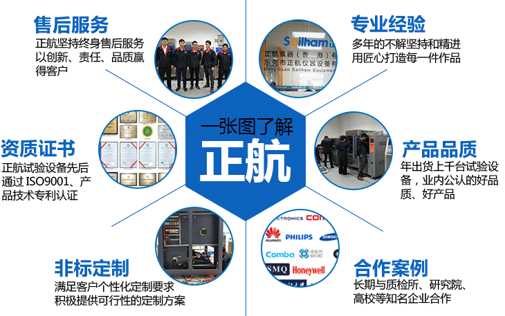 正航儀器設(shè)備有限公司是一家致力于各種環(huán)境檢測(cè)試驗(yàn)設(shè)備研發(fā)、設(shè)計(jì)、制造、銷(xiāo)售服務(wù)為一體的專(zhuān)業(yè)性企業(yè)。并陸續(xù)在全國(guó)各大城市建立營(yíng)銷(xiāo)及售后服務(wù)網(wǎng)絡(luò)。我們合作客戶(hù)有質(zhì)檢所、科研單位、大學(xué)、國(guó)企、大型企業(yè)。設(shè)備的精密情、穩(wěn)定性、售后服務(wù)等都有保障。公司不斷精益求精,創(chuàng)造符合多行業(yè)可靠性試驗(yàn)標(biāo)準(zhǔn)要求的優(yōu)質(zhì)產(chǎn)品,客戶(hù)遍及于電子、電池、TP、半導(dǎo)體、LED光電、塑膠塑料、汽車(chē)、軍工、大專(zhuān)院校、航天、科研、計(jì)量、質(zhì)檢、太陽(yáng)能光伏...等科技產(chǎn)業(yè),從產(chǎn)品研發(fā)到售后服務(wù),每一個(gè)環(huán)節(jié)之間都以客戶(hù)的觀(guān)點(diǎn)與需求作為思考的出發(fā)點(diǎn),專(zhuān)注非標(biāo)定制。![]() |